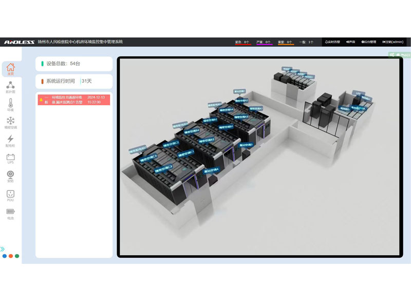 近期有幸為江蘇省某市檢察院提供三套安德力士品牌微模塊機(jī)房設(shè)備,涉及系統(tǒng)有:UPS不間斷電源、精密空調(diào)、機(jī)柜、配電、動(dòng)力環(huán)境監(jiān)控等系統(tǒng);涉及主要設(shè)備有:UPS主機(jī)(30KVA、40KVA、300KVA)、鉛酸蓄電池(100AH64節(jié)、200AH128節(jié)、250AH320節(jié))、精密空調(diào)(行級(jí)25KW12臺(tái)、基站12.5KW4臺(tái))、機(jī)柜51套,現(xiàn)已全部安裝調(diào)試完成。